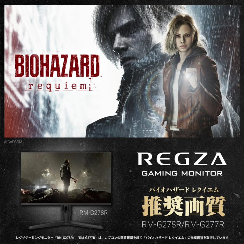 TVS REGZA株式会社は、すでに以下の8ラインアップのテレビ製品で『バイオハザード レクイエム』推奨画質・音質認証を取得しています。