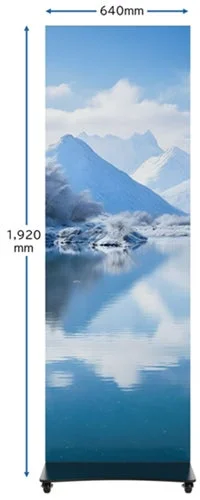 「風二屏 FU-NIBYO」は、「小さく運んで大きく使う」というコンセプトを継承し、二つに折りたたむことでコンパクトに運搬が可能です。また、屋内と屋外のどちらでも利用できる点が大きな特長です。薄型軽量かつ自立式のため、特別な設置工事を必要とせず、これまで映像設備が不足していた施設やスペースでも、大画面映像による迫力ある演出が実現できます。