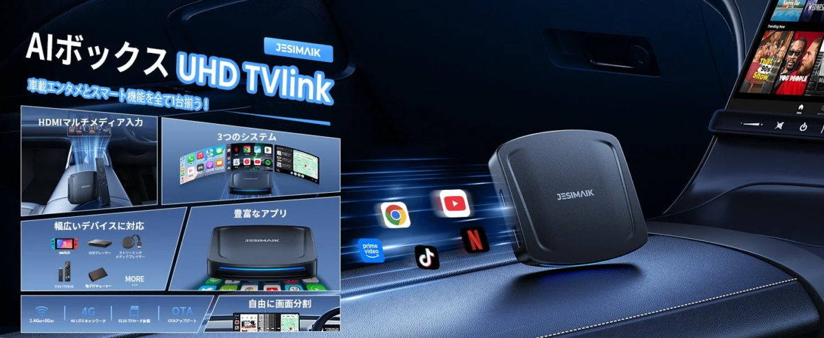 JESIMAIK、車載エンタメを革新する次世代AI BOX「UHD TVlink」を発表 HDMI入力でFire TVからSwitchまで車内で利用可能に