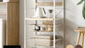 空間や家具に馴染みやすいシンプルなフォルムが特徴です。キッチンだけでなく、リビングのディスプレイラックやブックラック、デスクラックとしても活用でき、様々な場所に調和します。カップや調味料の転倒落下を防ぐ約5cmのガードも設けられており、実用性も兼ね備えています。